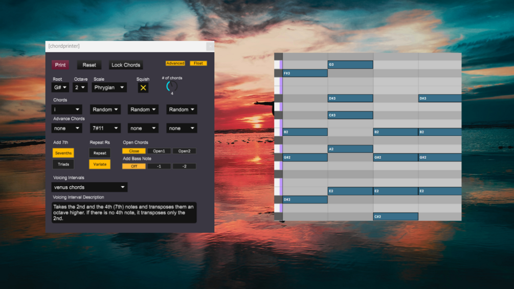 Chord Printer is a Max for Live MIDI device for instant generation of chord progressions.